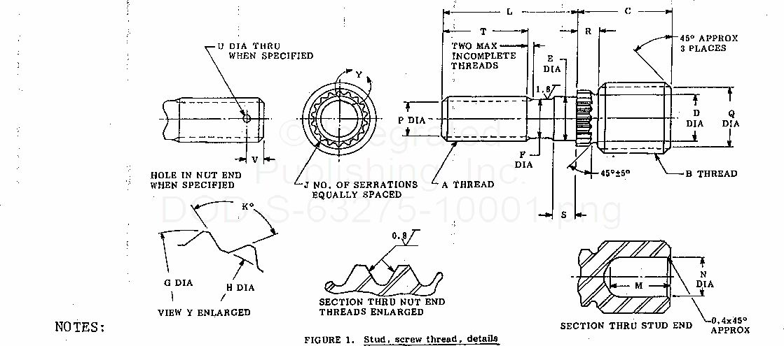 Stud, Screw Thread, Locked In, Ring Locked, Serrated, Metric