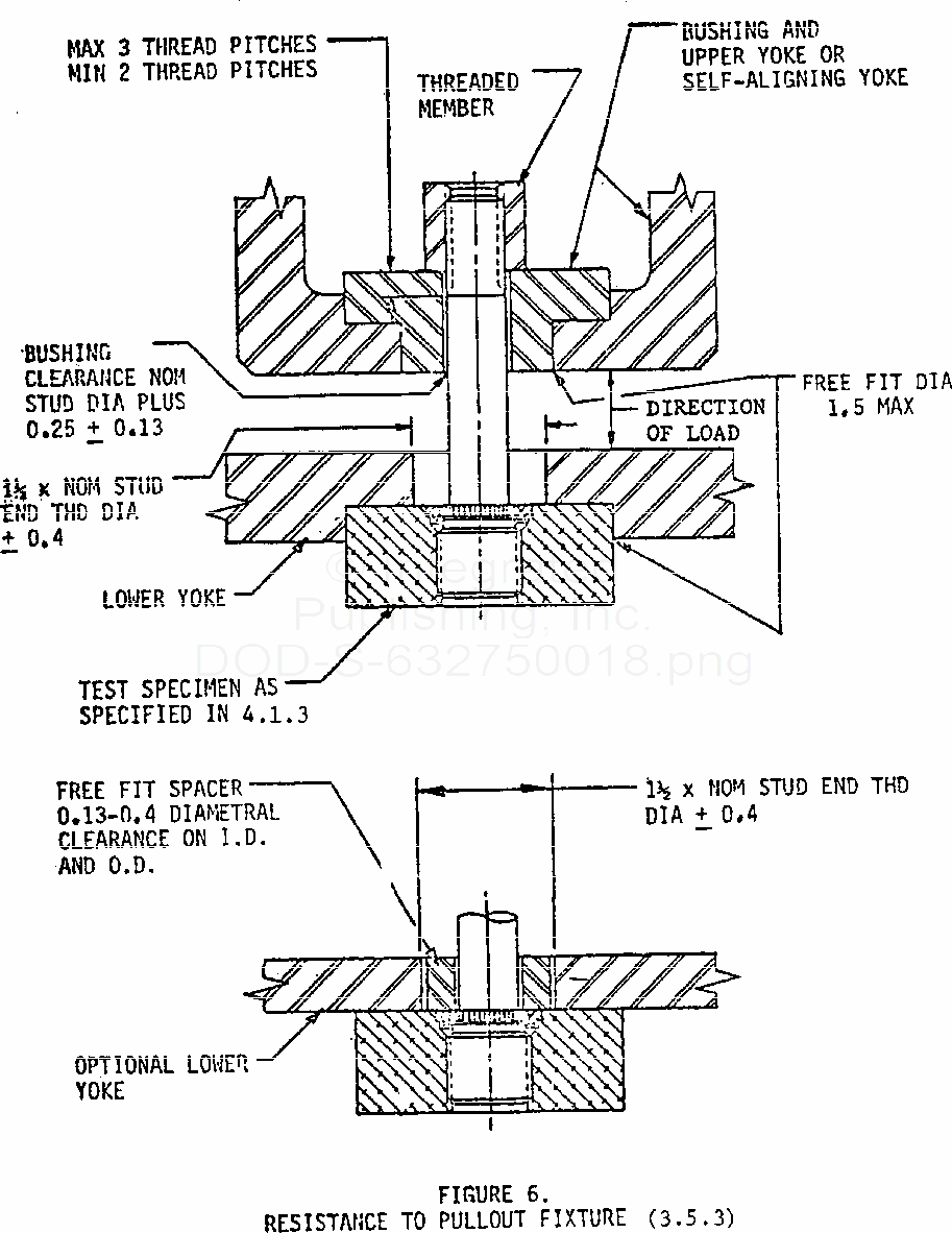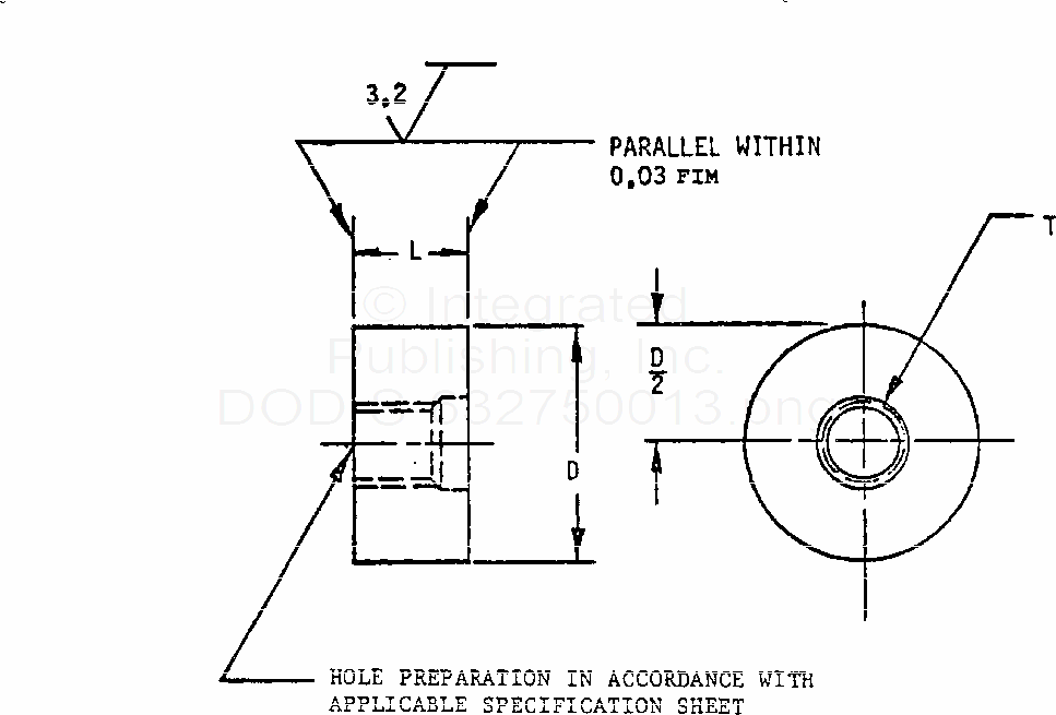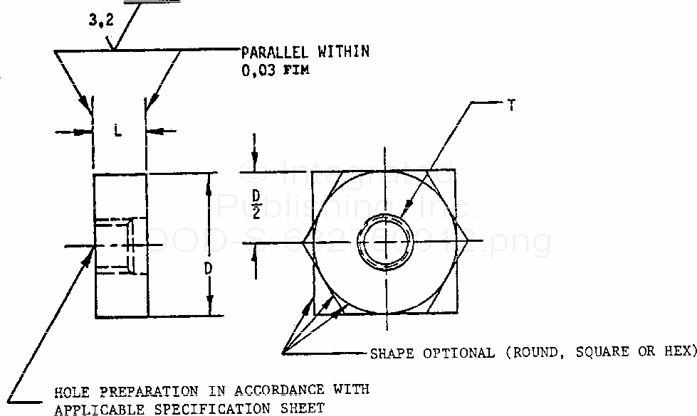 DOD-S-63275 Stud, Screw Thread, Locked In, Ring Locked, Serrated, Metric And Ring, Lock, Serrated, Metric, General Specification ForThis specification covers metric locked in studs. The method of locking in the stud is by means of a serrated collar and an accessory lockring with matching serrations installed within the parent material to prevent rotation.