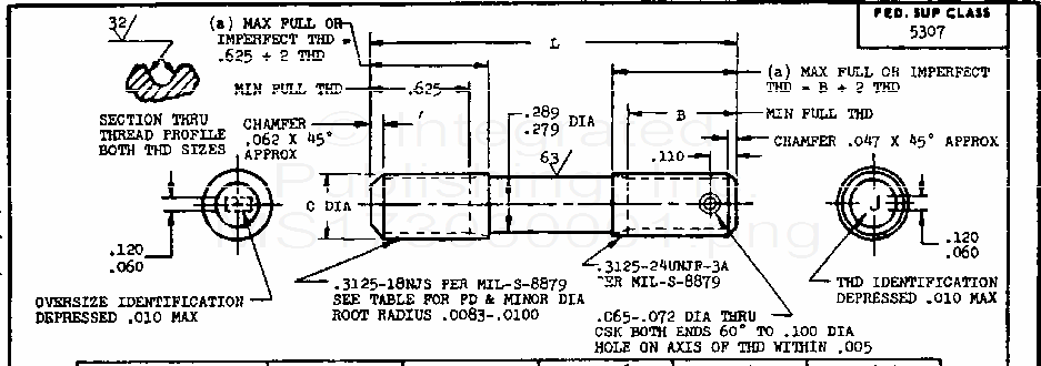 MS17303 Stud-Straight, Drilled, .3125-18 X .3125-24 (Mil-S-8879 Thread)