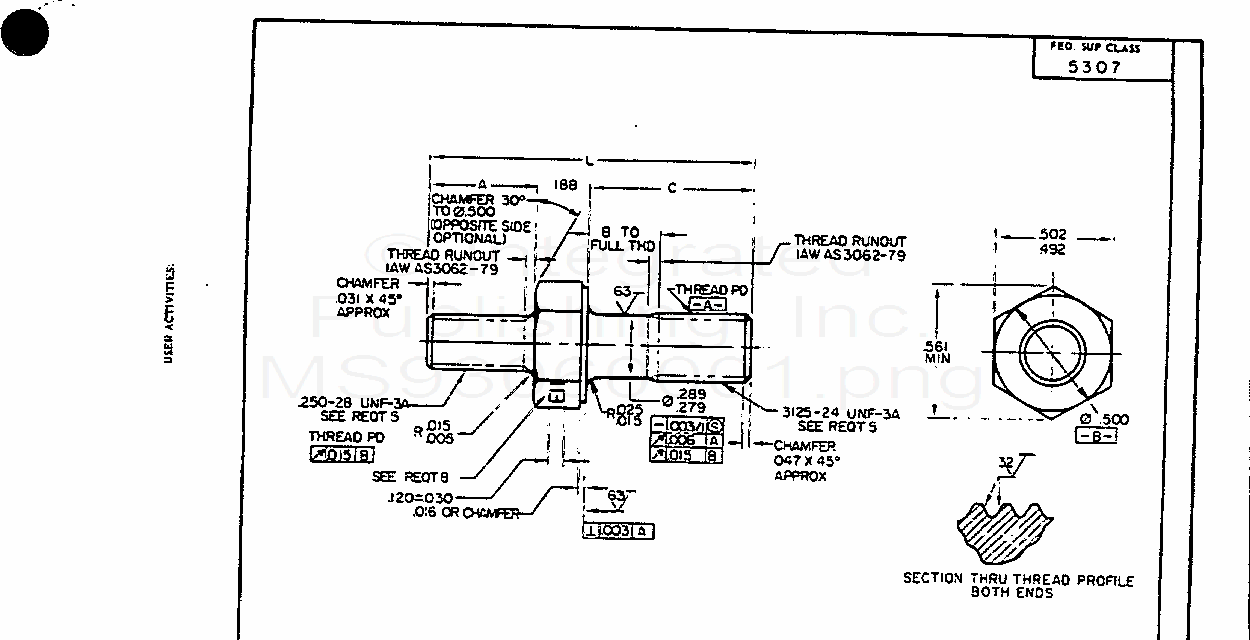 MS9306 Stud, Shouldered And Stepped, Hexagon Wrenching, Steel, .250-28 Unf-3A X .3125-24 Unf-3A (S/S By Sae-As9306)
