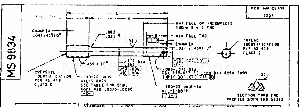 MS9834 Stud-Stepped, Drilled, 2 Dia. Engagement Steel, 0.250-20 Unjs X 0.190-32 Unjf