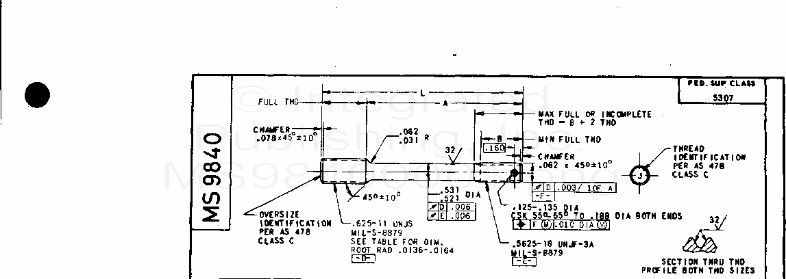 MS9840 Stud-Stepped, Drilled, 2 Dia. Engagement, Steel, 0.625-11 Unjs X 0.5625-18 Unjf